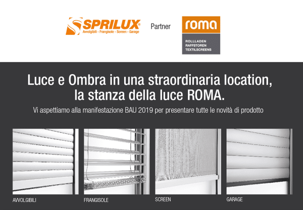 Sprilux sarà presente alla manifestazione BAU di Monaco che si terrà dal 16 al 19 Gennaio presso lo Stand ROMA, Padiglione C2, stand 310. Vieni a conoscere le novità dei nostri