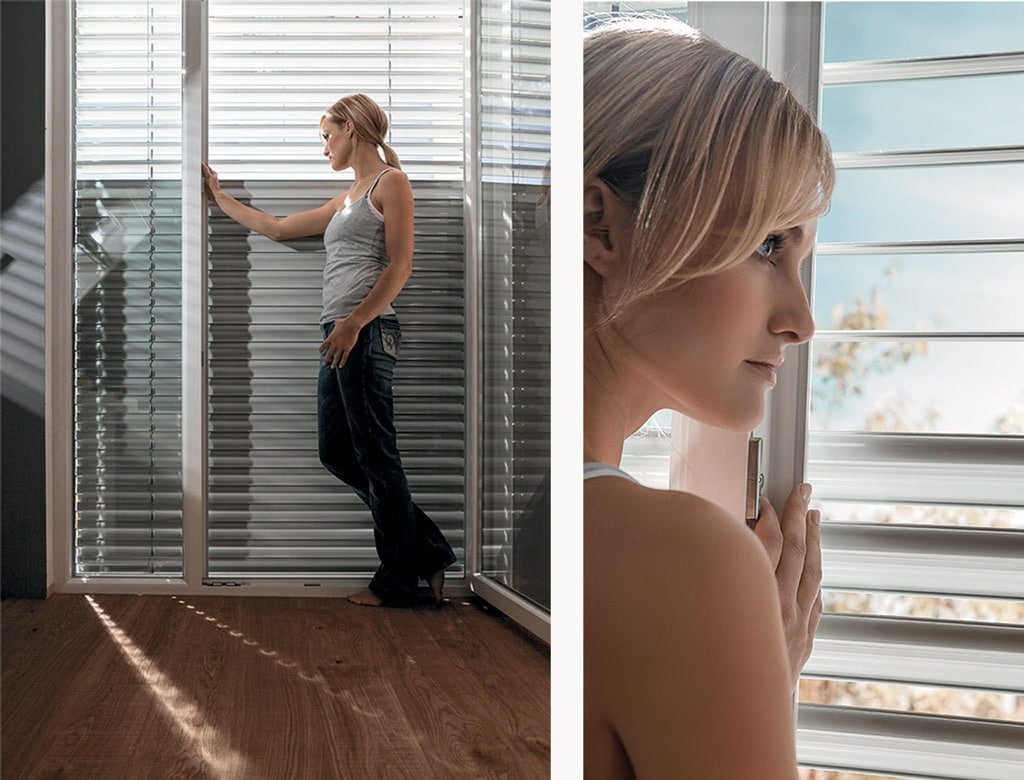 I frangisole possono deflettere in modo ottimale la luce e mantenere la privacy nelle tue stanze. Con la tecnologia Sprilux la parte inferiore rimane chiusa quando i frangisole sono abbassati, mentre la parte superiore lascia entrare la luce per mezzo di lamelle orientabili. Così si può vivere in un ambiente rilassato, mentre i frangisole forniscono un perfetto equilibrio tra apertura e privacy.