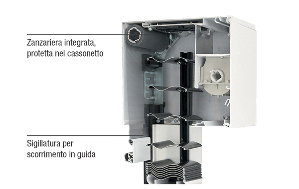 I frangisole Sprilux sono molto più di semplici lamelle assemblate da aprire e richiudere. Se ti piace dormire con la finestra aperta nei caldi mesi estivi, ma rinunci volentieri alle visite “pungenti”, puoi ricorrere semplicemente alla zanzariera integrata Sprilux. Si abbassa facilmente e in un batter d’occhio e quando è inutilizzata scompare nel cassonetto del frangisole, dove è meglio protetta dalle intemperie.
