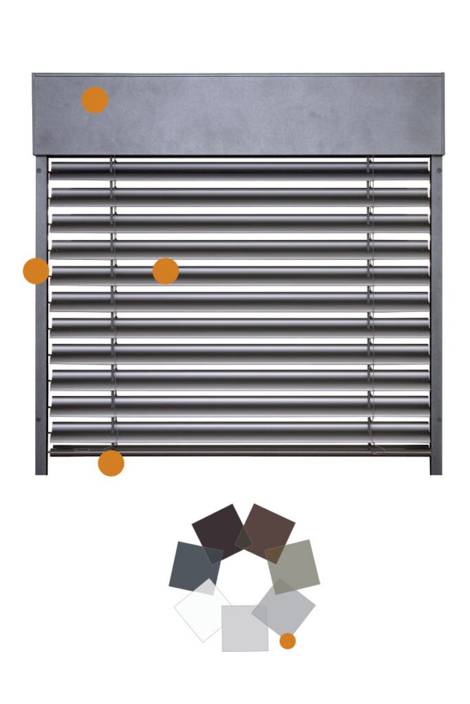 Le lamelle per frangisole ROMA sono disponibili in diversi colori standard e in più puoi scegliere tra ulteriori tonalità speciali: scegli sempre il colore sulla base dei campioni originali presso il tuo rivenditore di fiducia, solo così possiamo garantire che riceverai esattamente il colore desiderato.