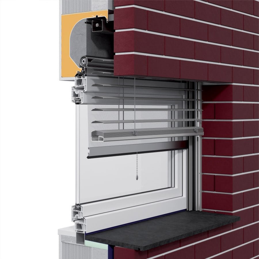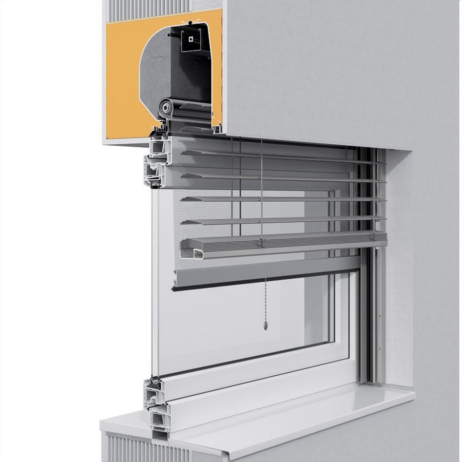 È il sistema frangisole di Sprilux perfetto sia per ristrutturazioni che per nuovi edifici. Il sistema è preassemblato e si adatta perfettamente ad ogni tipo di finestra. Il corpo principale del cassonetto per frangisole è realizzato in poliuretano espanso (PUR) e garantisce alti livelli di isolamento acustico e termico. PUR è completamente atossico, inodore e resistente alla muffa. Il guscio interno altamente resistente impedisce agli insetti o ai roditori di distruggere il corpo in schiuma. La speciale struttura della superficie esterna garantisce un’adesione ottimale al gesso.